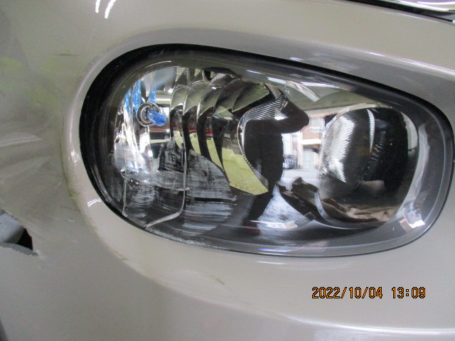 フロントバンパーに穴が開いてしまっていた他、ヘッドライトの割れ、フェンダーとドアの歪みと、見た目の印象以上のダメージを負っていました。