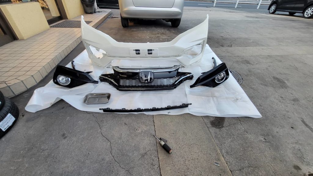 新品のバンパーには細かいパーツは付属していないため、取り外したバンパーからパーツを移植していきます。